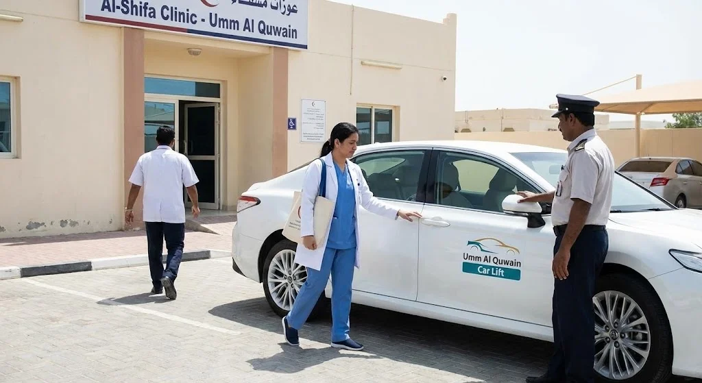 For hospital and clinical staff, the Umm Al Quwain car lift service is the best option, as we send the nearest available car to your location. We do not tolerate any delays in staff transportation and strongly believe in on-time arrival.